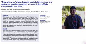 Pre- and post-terror experiences among returnee victims of Boko Haram in Orlu, Imo State